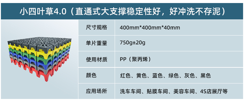1、產品規(guī)格40*40CM  下轄2-3-4-5CM四個厚度。       2、正和【小四葉草】專利號:ZL 2018 3 0578634