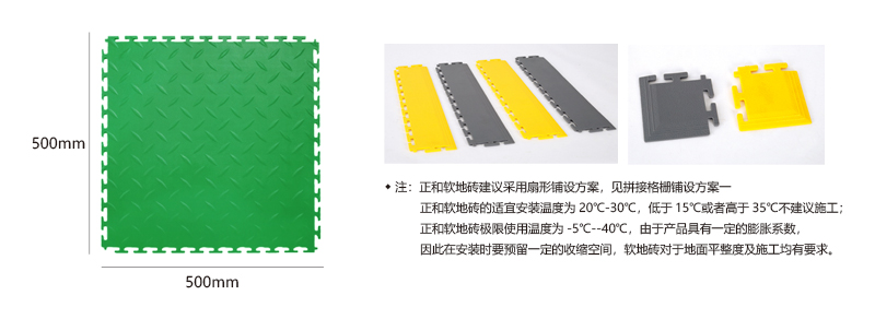 軟質(zhì)絕緣地板能夠?qū)⒚總(gè)獨(dú)立的地板快速拼裝成整體地面,專利型鎖扣結(jié)構(gòu)連接能力更強(qiáng),可承受叉車的來(lái)回碾壓。施工過(guò)程中無(wú)需膠