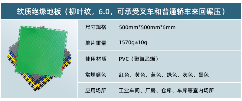 軟質(zhì)絕緣地板采用純新軟性PVC(聚氯乙烯)生產(chǎn)而成,具有防滑、防油、靜音、抗沖擊、高承載等特點(diǎn),可以快捷安裝在任何現(xiàn)有的基